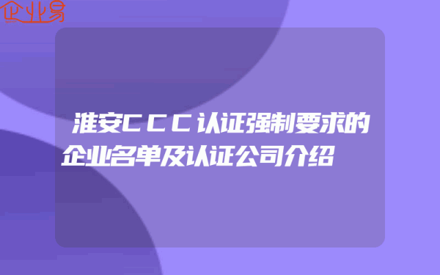 - 淮安CCC认证强制要求的企业名单及认证公司介绍