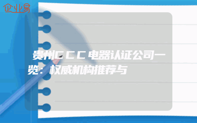 - 贵州CCC电器认证公司一览:权威机构推荐与