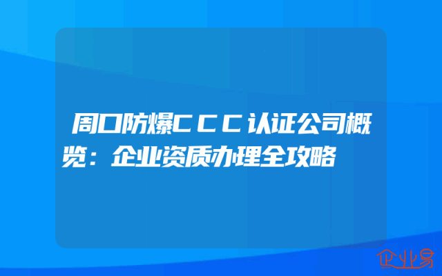 - 周口防爆CCC认证公司概览:企业资质办理全攻略