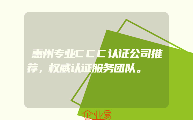 - 惠州专业CCC认证公司推荐:权威认证服务团队一、引言在中国市场,各类企业为了合规经营,常常需要办理各类认证。其中,CCC认证是中国强制性产品认证,是产品进入市场的必要门槛。对于惠州的企业来说,选择一家专业的CCC认证公司至关重要。本文将为您