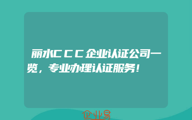 - 丽水CCC企业认证公司一览,专业办理认证服务!