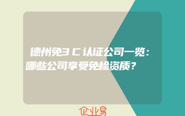 - 德州免3C认证公司一览:哪些公司享受免检资质?