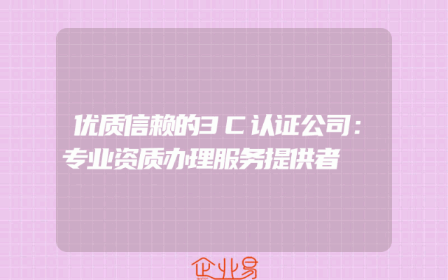 - 优质信赖的3C认证公司:专业资质办理服务提供者