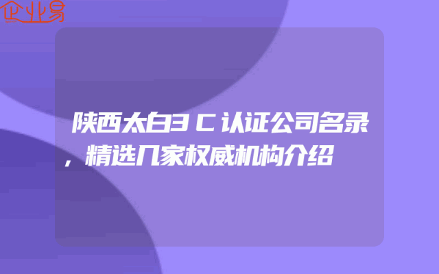 - 陕西太白3C认证公司名录,精选几家权威机构介绍