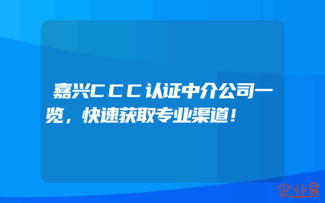 - 嘉兴CCC认证中介公司一览,快速获取专业渠道!
