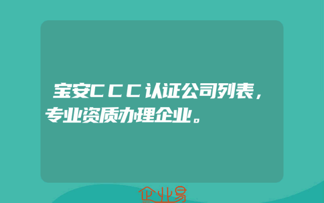 - 宝安CCC认证公司列表,专业资质办理企业。