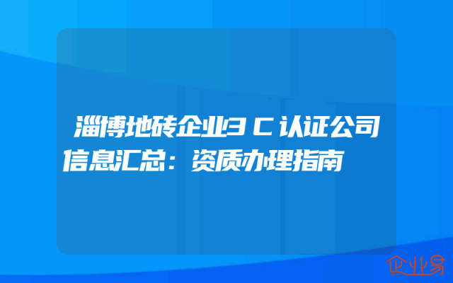 - 淄博地砖企业3C认证公司信息汇总:资质办理指南