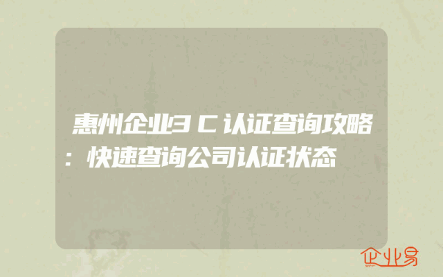 - 惠州企业3C认证查询攻略:快速查询公司认证状态