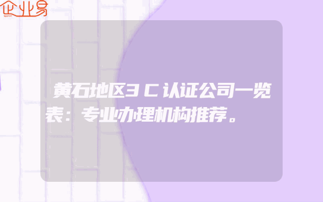 - 黄石地区3C认证公司一览表:专业办理机构推荐。