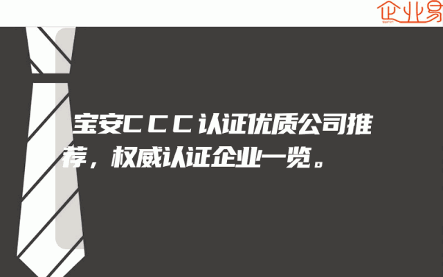 - 宝安CCC认证优质公司推荐,权威认证企业一览。