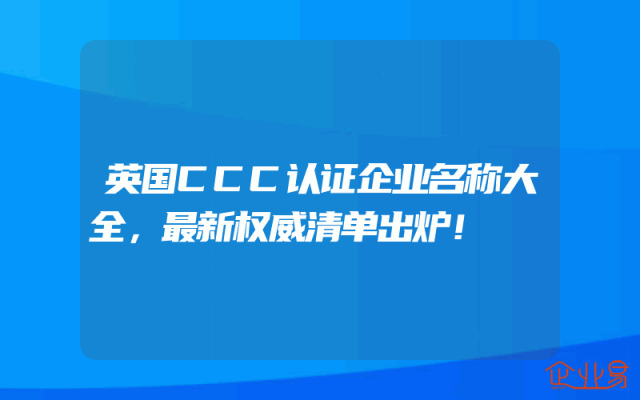 - 英国CCC认证企业名称大全,最新权威清单出炉!