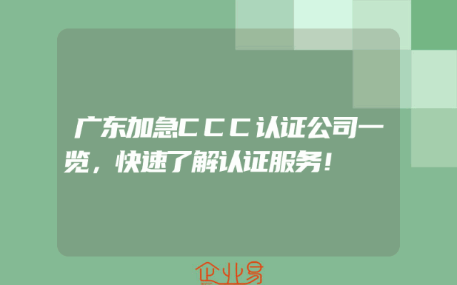 - 广东加急CCC认证公司一览,快速了解认证服务!
