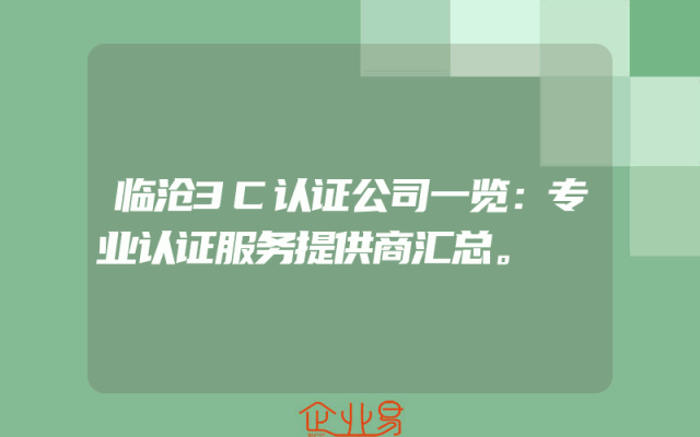 - 临沧3C认证公司一览:专业认证服务提供商汇总。