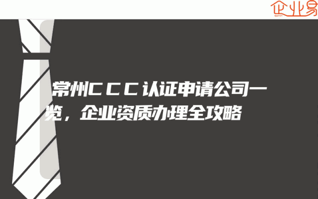- 常州CCC认证申请公司一览,企业资质办理全攻略