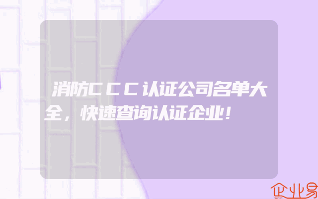 - 消防CCC认证公司名单大全,快速查询认证企业!