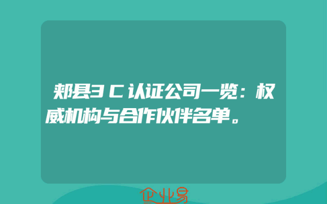 - 郏县3C认证公司一览:权威机构与合作伙伴名单。
