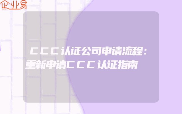 - CCC认证公司申请流程:重新申请CCC认证指南