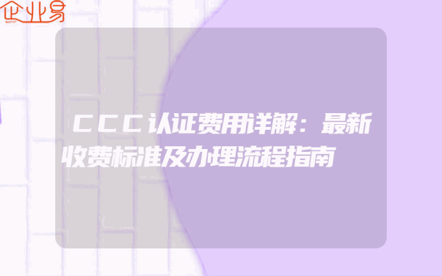 - CCC认证费用详解:最新收费标准及办理流程指南