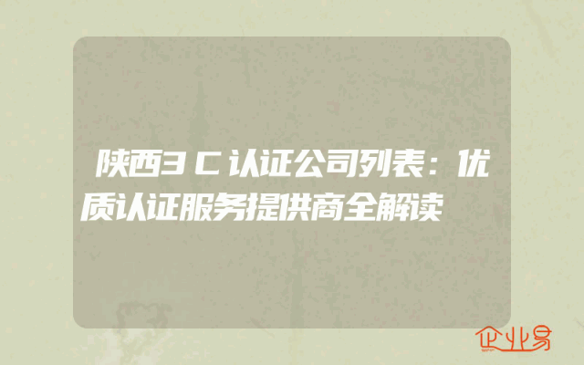 - 陕西3C认证公司列表:优质认证服务提供商全解读