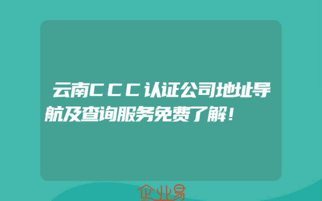 - 云南CCC认证公司地址导航及查询服务免费了解!