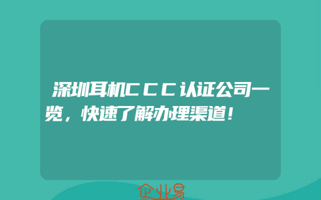 - 深圳耳机CCC认证公司一览,快速了解办理渠道!