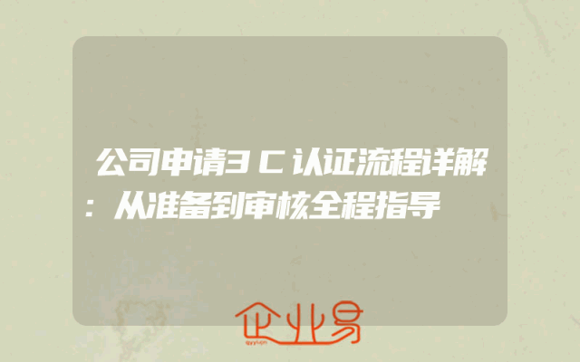 - 公司申请3C认证流程详解:从准备到审核全程指导