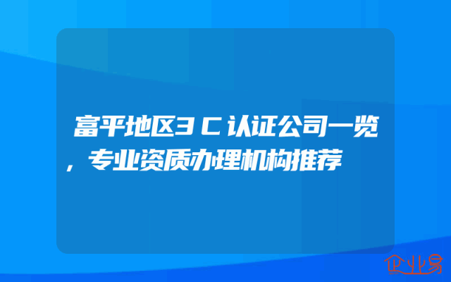 - 富平地区3C认证公司一览,专业资质办理机构推荐