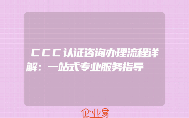 - CCC认证咨询办理流程详解:一站式专业服务指导