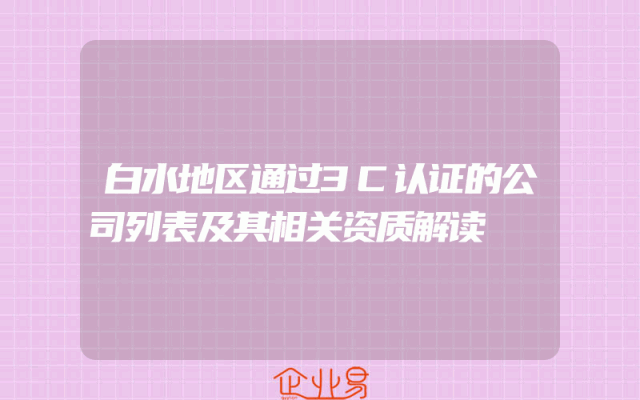 - 白水地区通过3C认证的公司列表及其相关资质解读