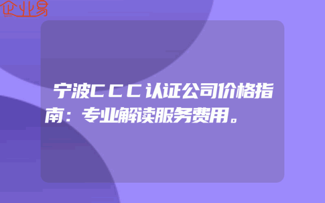 - 宁波CCC认证公司价格指南:专业解读服务费用。