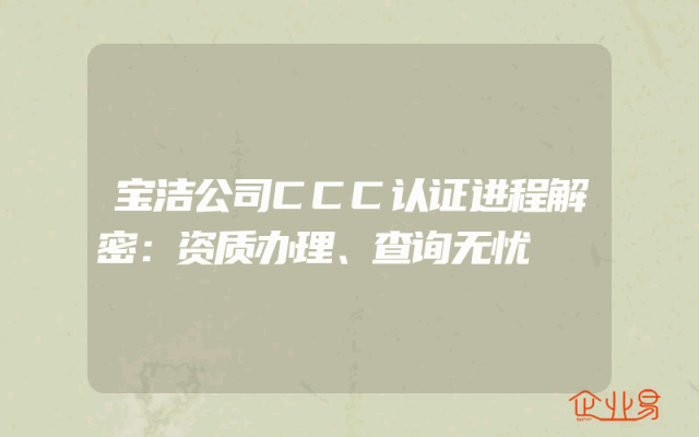 - 宝洁公司CCC认证进程解密:资质办理、查询无忧