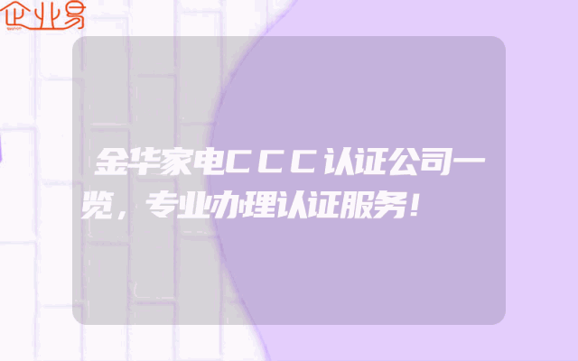 - 金华家电CCC认证公司一览,专业办理认证服务!