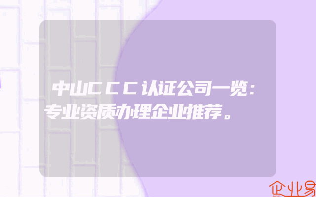 - 中山CCC认证公司一览:专业资质办理企业推荐。