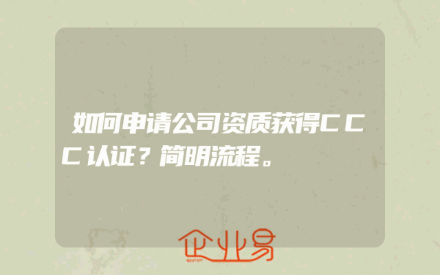 - 如何申请公司资质获得CCC认证?简明流程。