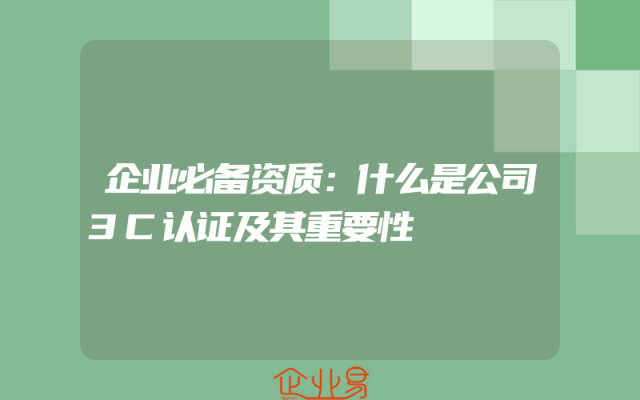 - 企业必备资质:什么是公司3C认证及其重要性