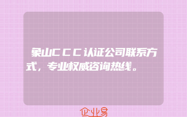 - 象山CCC认证公司联系方式,专业权威咨询热线。