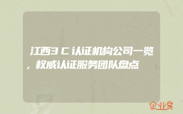 - 江西3C认证机构公司一览,权威认证服务团队盘点