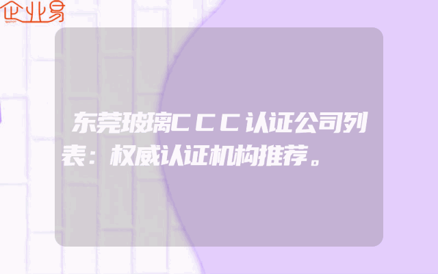- 东莞玻璃CCC认证公司列表:权威认证机构推荐。