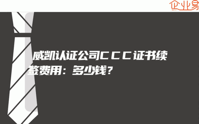 - 威凯认证公司CCC证书续签费用:多少钱?