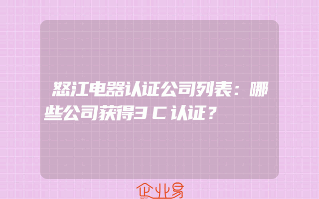 - 怒江电器认证公司列表:哪些公司获得3C认证?