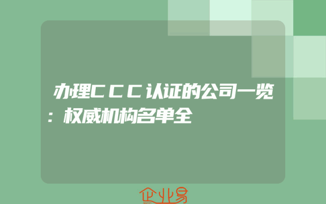 - 办理CCC认证的公司一览:权威机构名单全