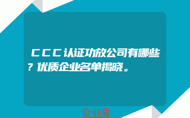 - CCC认证功放公司有哪些?优质企业名单揭晓。