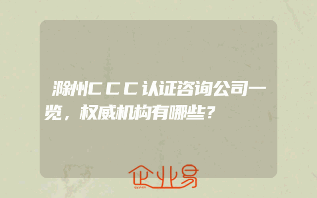 - 滁州CCC认证咨询公司一览,权威机构有哪些?