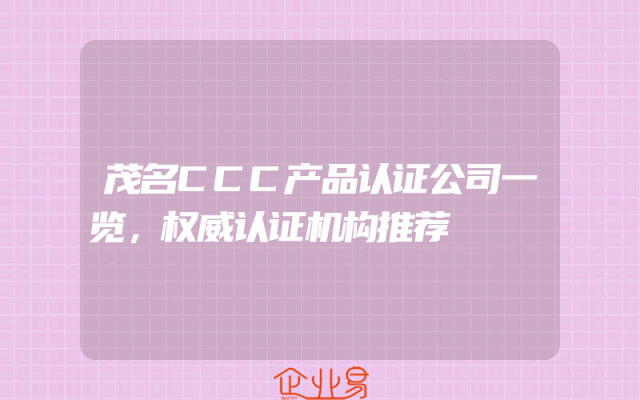 - 茂名CCC产品认证公司一览,权威认证机构推荐