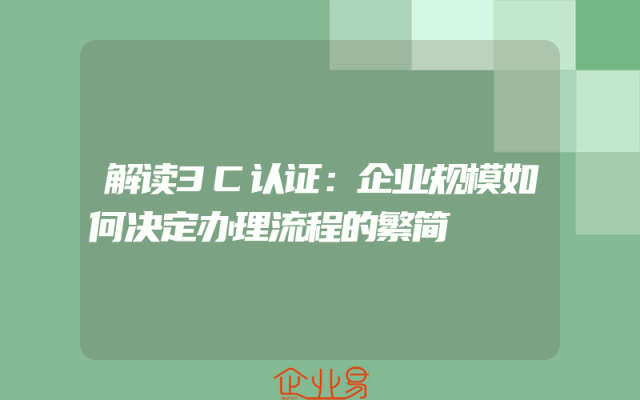 - 解读3C认证:企业规模如何决定办理流程的繁简
