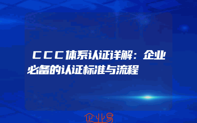 - CCC体系认证详解:企业必备的认证标准与流程