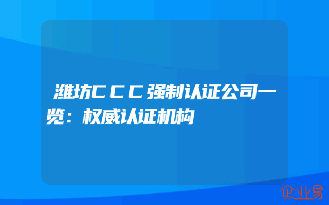 - 潍坊CCC强制认证公司一览:权威认证机构