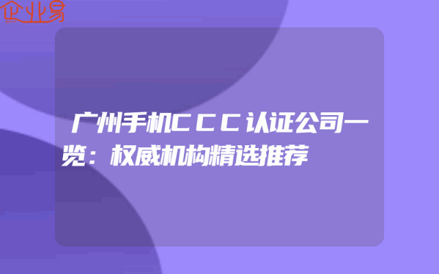 - 广州手机CCC认证公司一览:权威机构精选推荐
