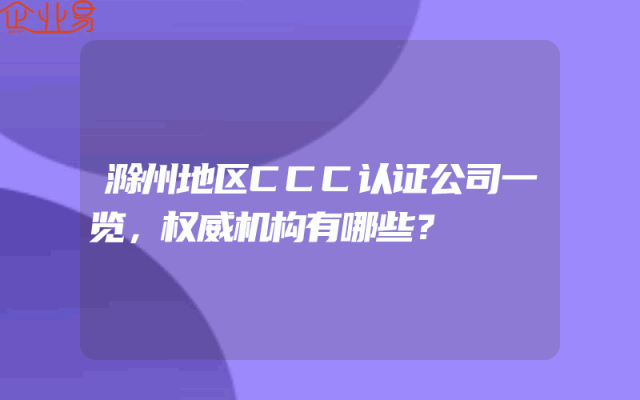 - 滁州地区CCC认证公司一览,权威机构有哪些?
