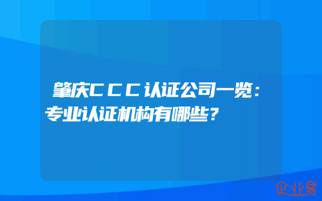 - 肇庆CCC认证公司一览:专业认证机构有哪些?
